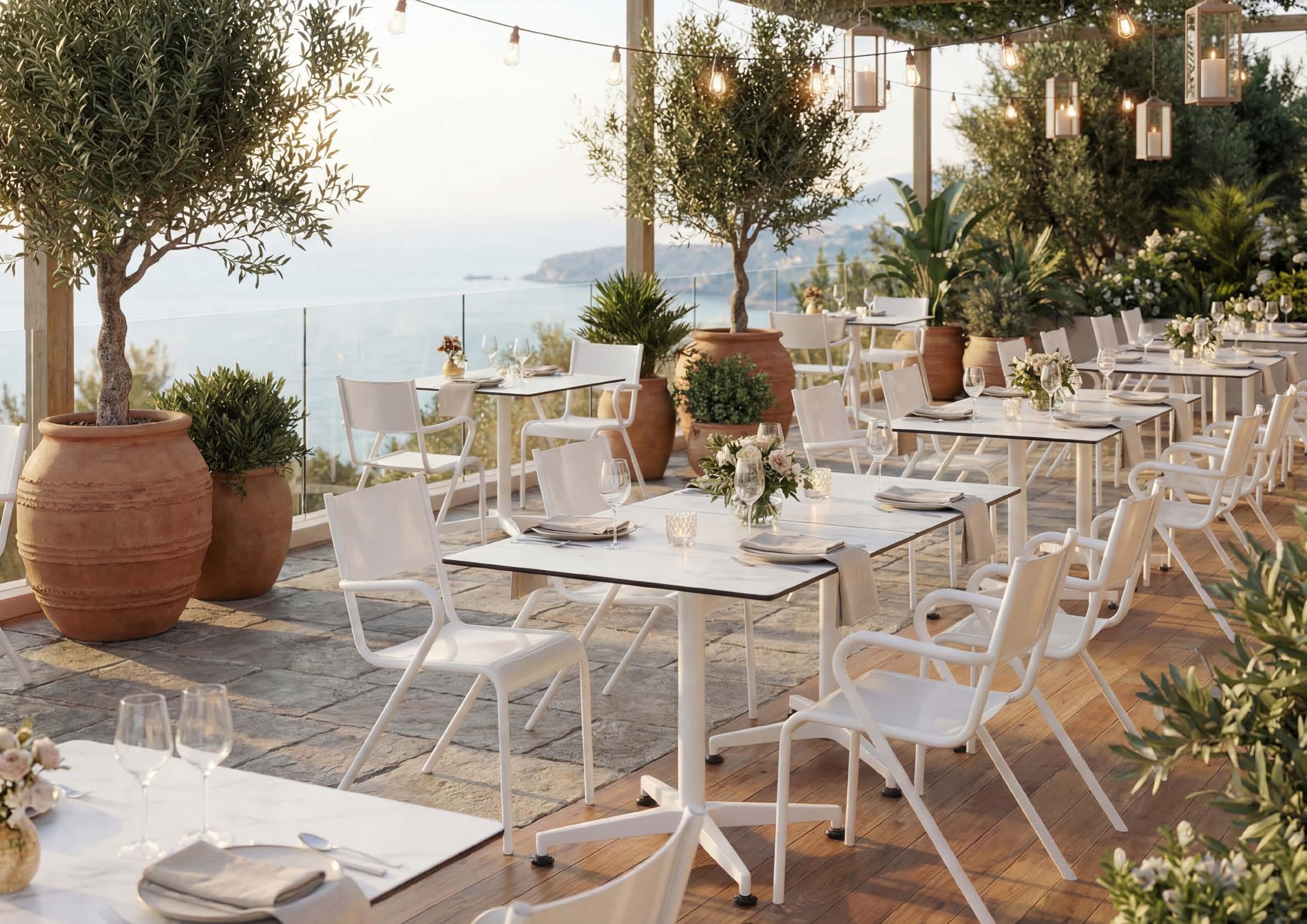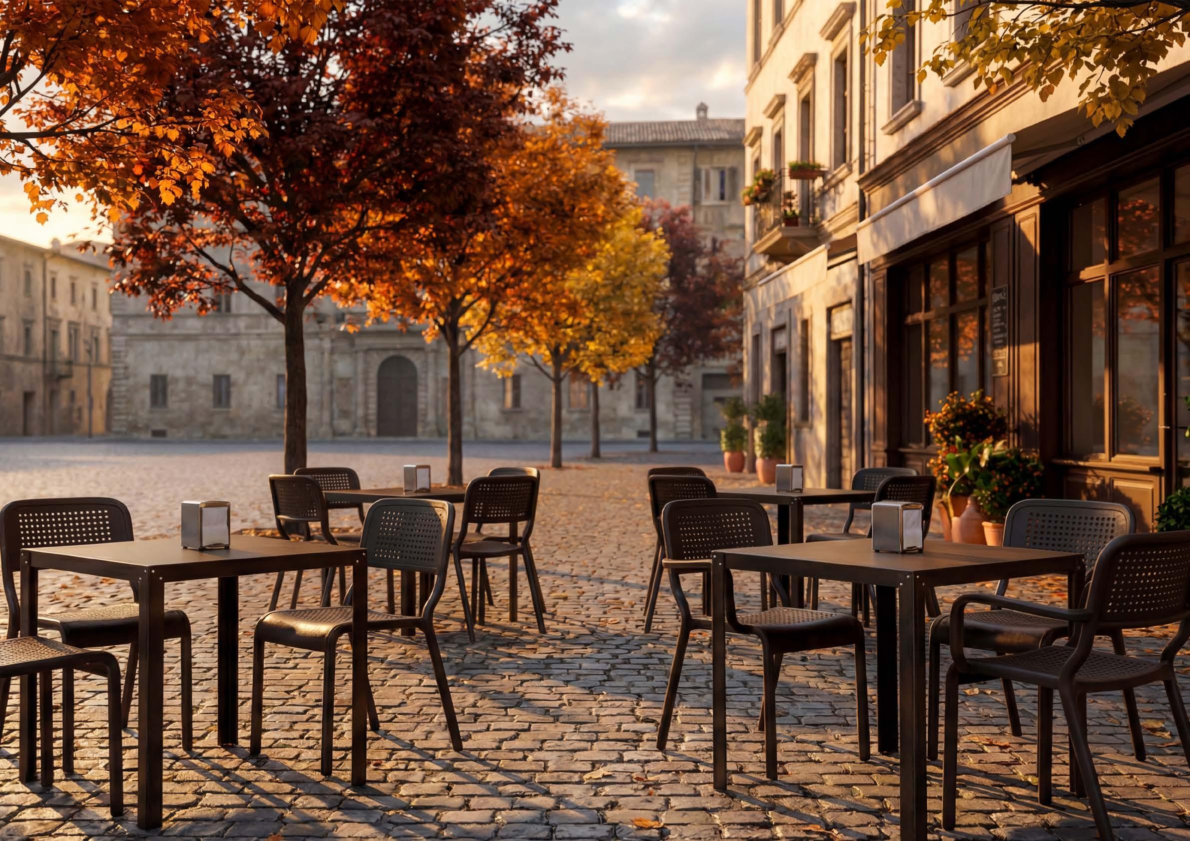 La linea Liberty evoca l’atmosfera dei bistrò parigini con linee sinuose e dettagli floreali stilizzati. Le basi, finemente lavorate, trasformano ogni ambiente horeca in uno spazio dal fascino ricercato.