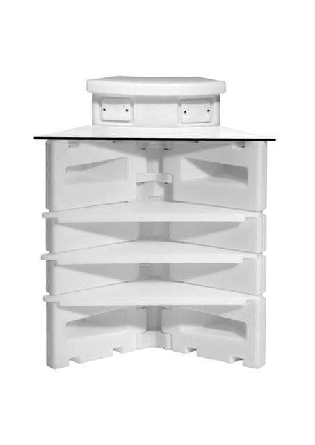 Androyd turns the polyethylene counter into a striking, modular, and versatile element. Its sculptural design plays with light and invites the creation of everchanging compositions.