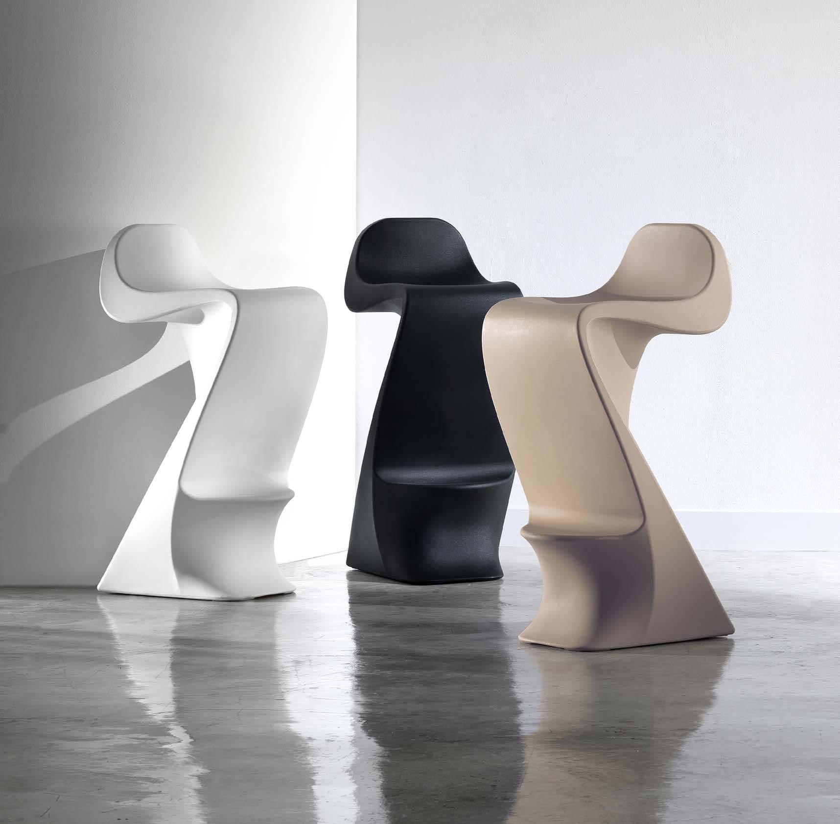 Lightweight and durable polyethylene highlights the fluidity of its forms.
