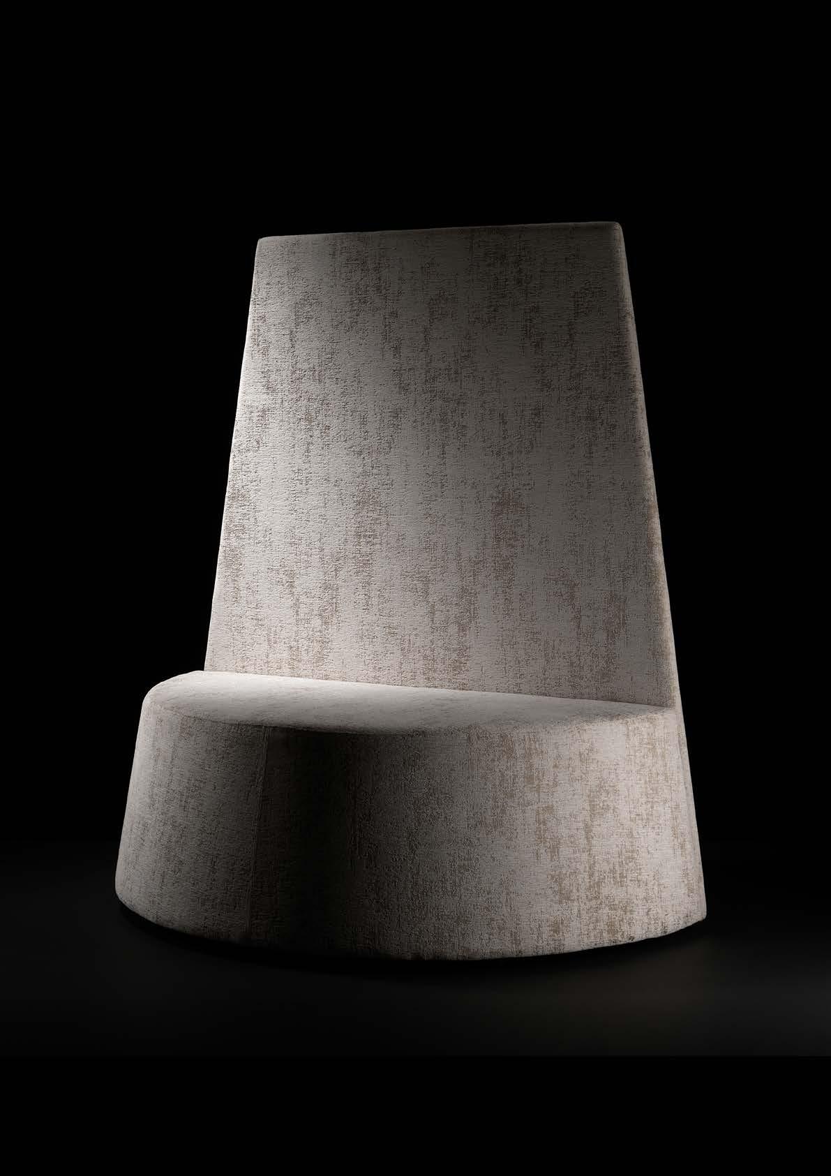 Olli di Mezzo draws the eye with its embracing crescent shape and comfortable backrest. The foam-upholstered frame and richly textured coverings enhance its distinctive character.