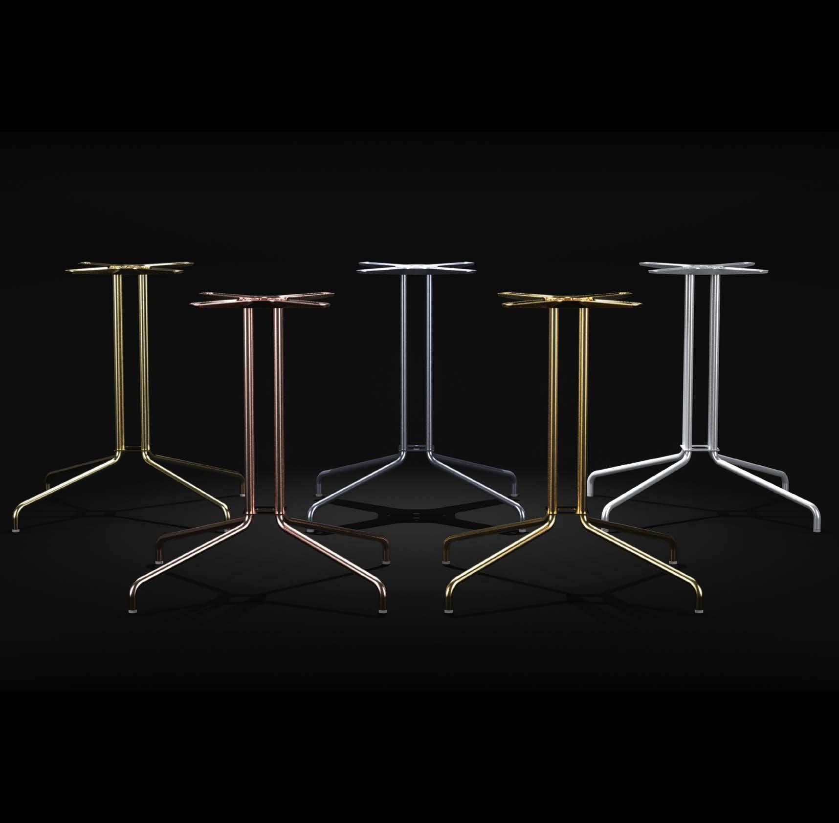532 and 533 bases stand out for their quadroid curvature, which gives their profile dynamism and uniqueness. The slender columns add lightness and refinement, turning each base into a stylish element.