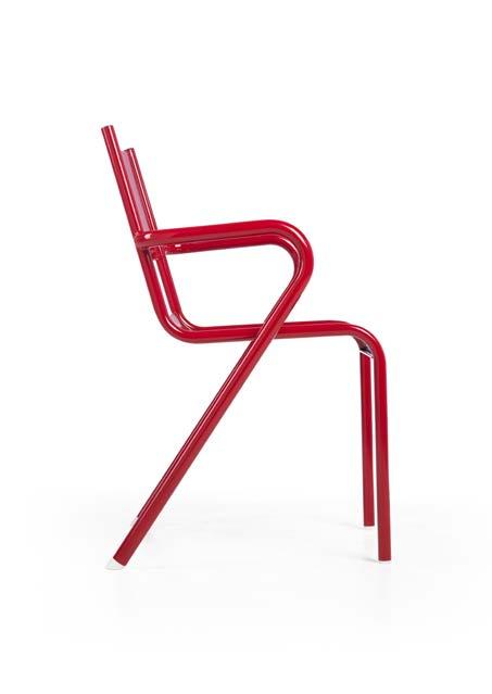Twin celebrates symmetry with balance: divided vertically, it reveals two identical halves. Seat and backrest share the same shape, while the tubular steel back creates a distinctive graphic line.