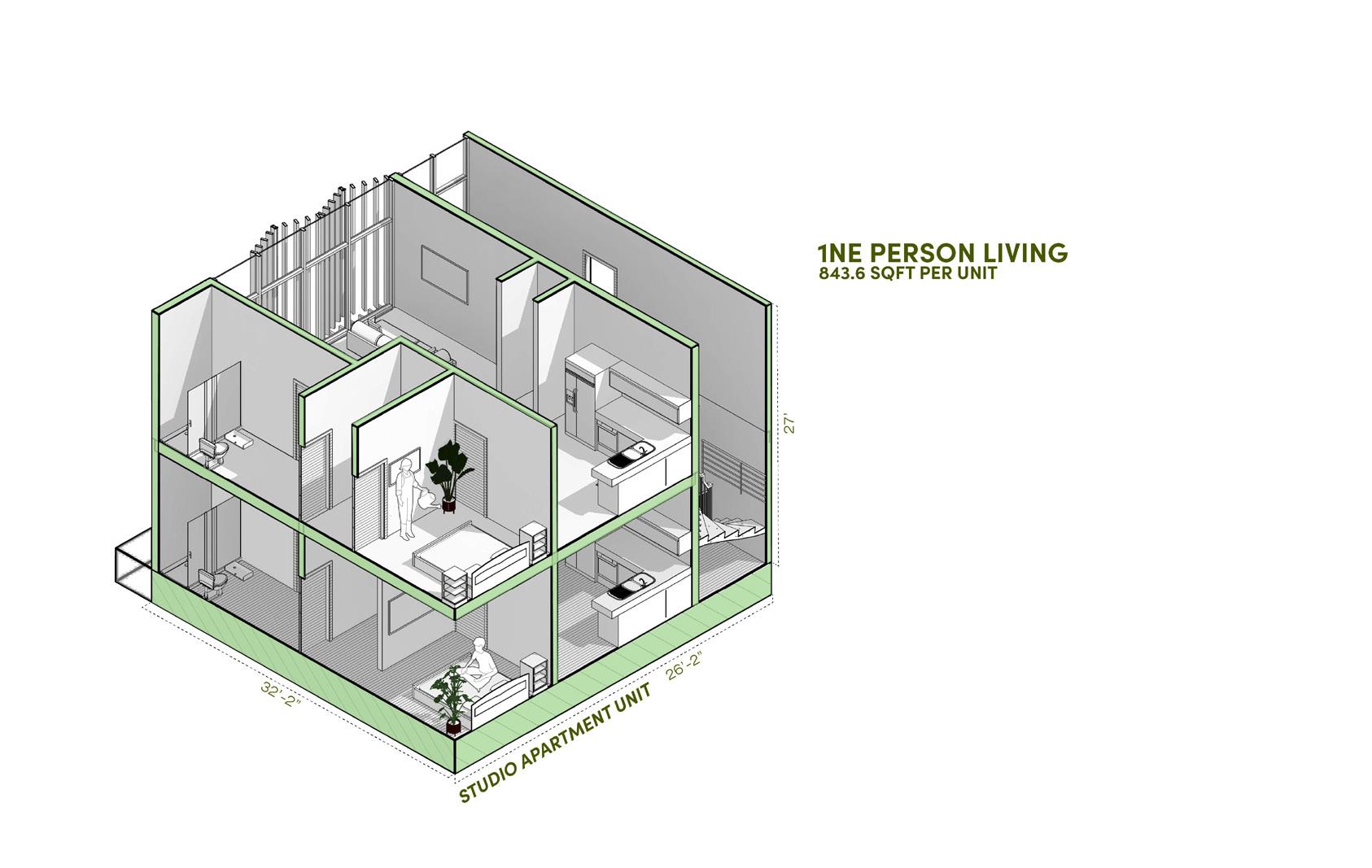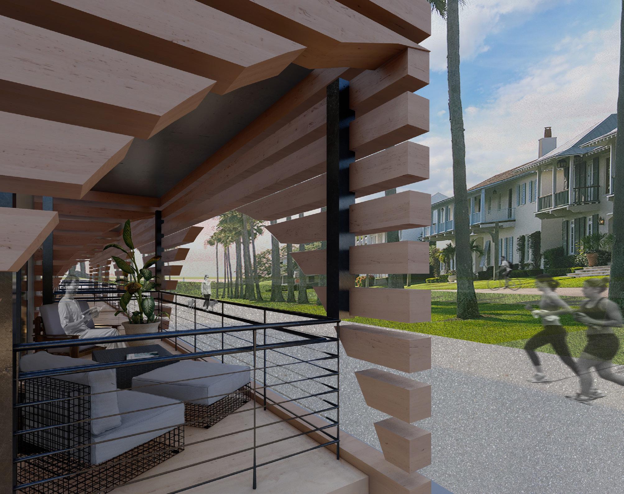 This project was developed with the idea of creating a rowhouse style apartment living. The challenge was to engage a design proposal that questions the ideas of convention and tradition. Inspired by St.Augustine, Florida homes, my approach was emphasized in utilizing materials that were used in an Anglo-Caribbean home like wood and stucco.