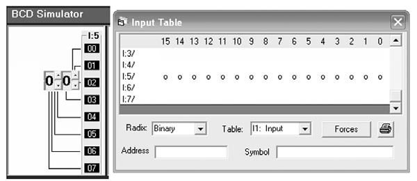 When the simulation is slowed, so is the PLC scanning. You can use this to good effect when trying to debug your program. Set the scan slow enough, and you can easily monitor how your program’s instructions are responding. This capability may not be typical of real PLCs, but for training purposes, you will find that it is an invaluable debugging tool