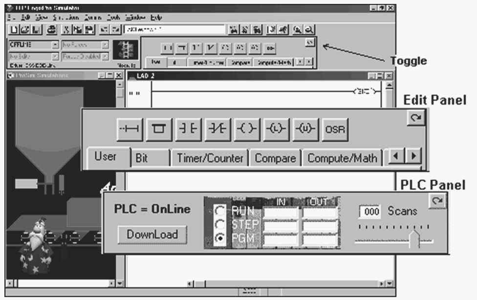 Click on the “Toggle” button of the PLC Panel, which will put the PLC into the PGM mode and bring the Edit Panel back into view.