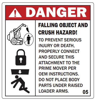 The safety decals affixed to this attachment are to keep you safe. DO NOT ignore these decals.