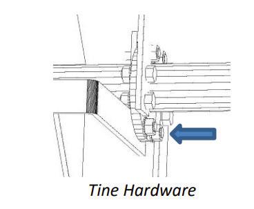 6. If a tine is damaged, remove the damaged tine, attach new tine and torque the bolts to the proper specifications found in this manual.