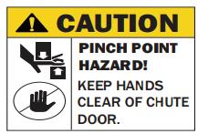 PINCH HAZARD: Keep clear of machine and attachment to prevent death or serious injury from pinching of moving parts.