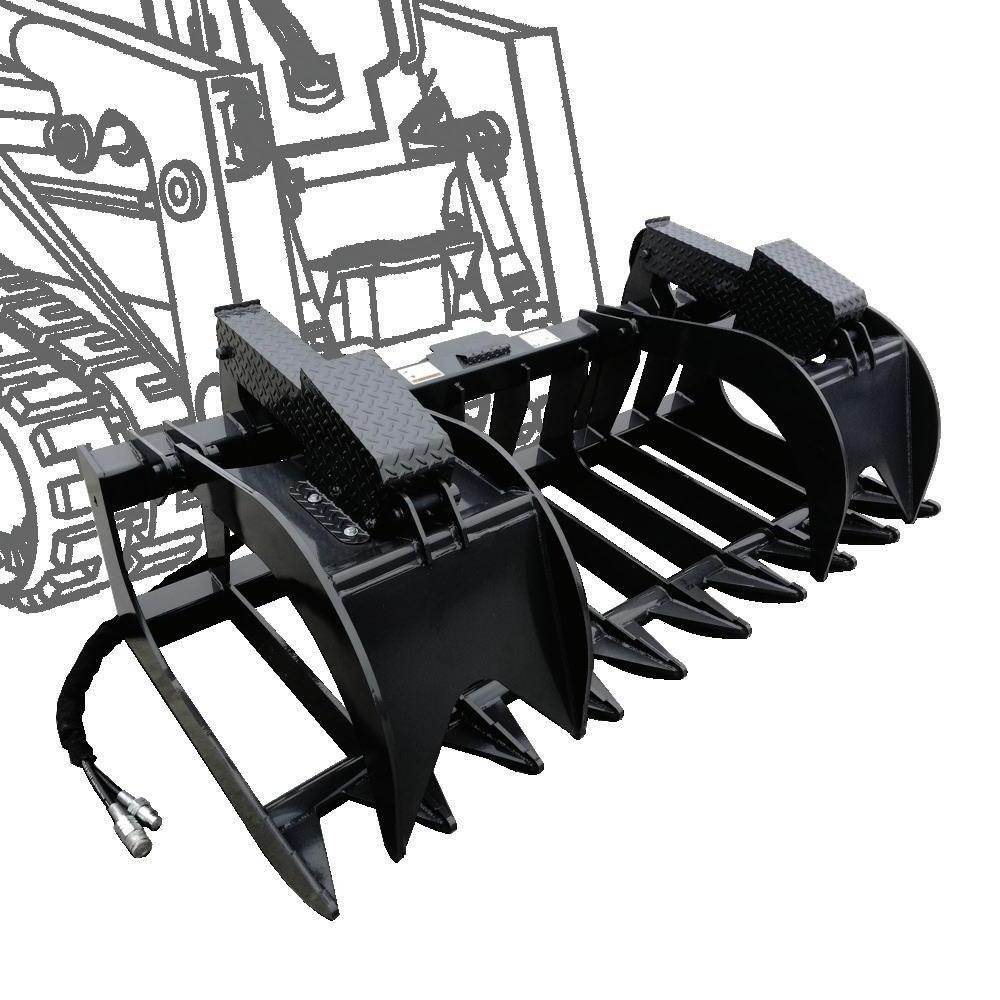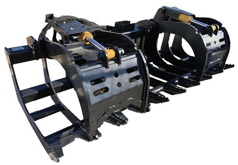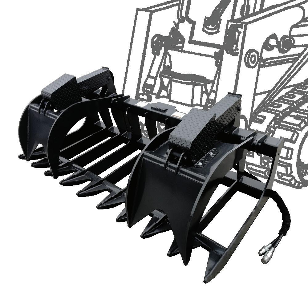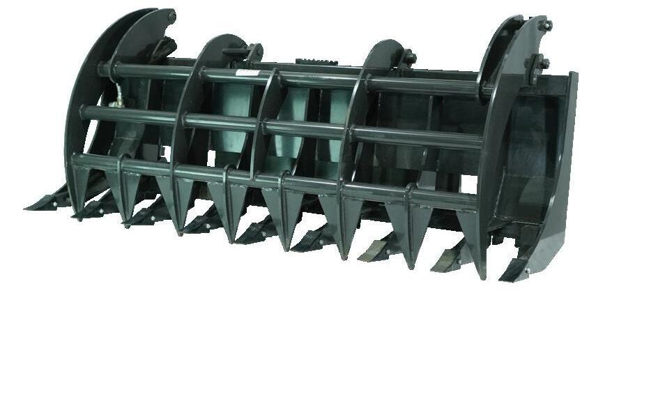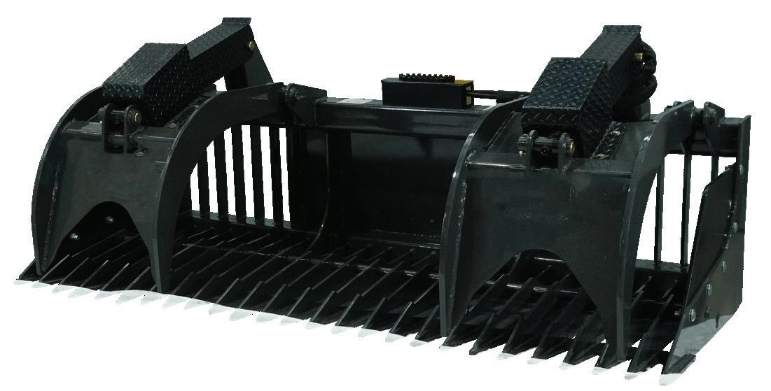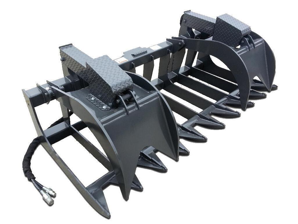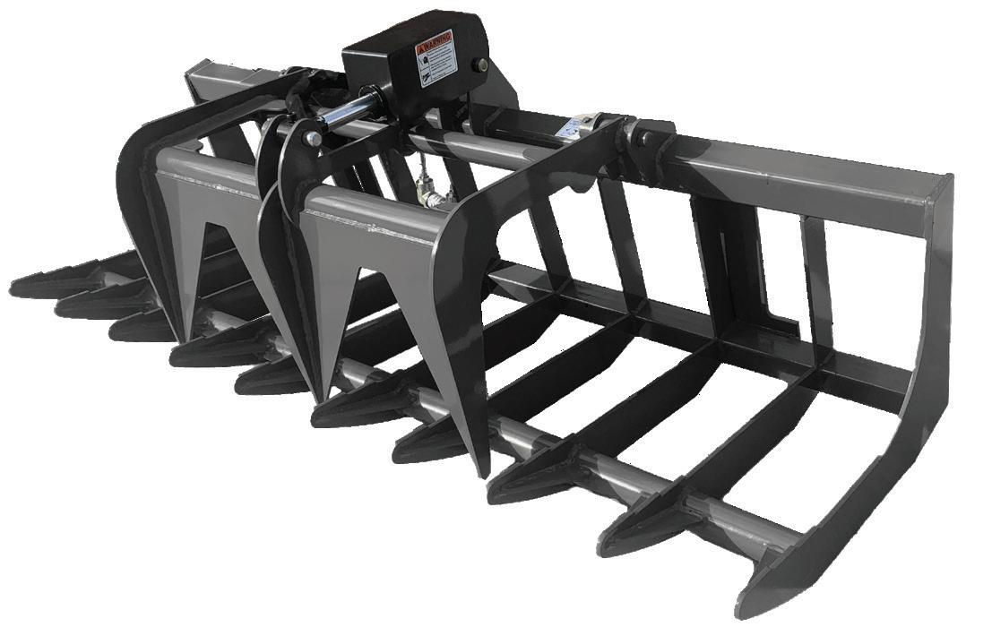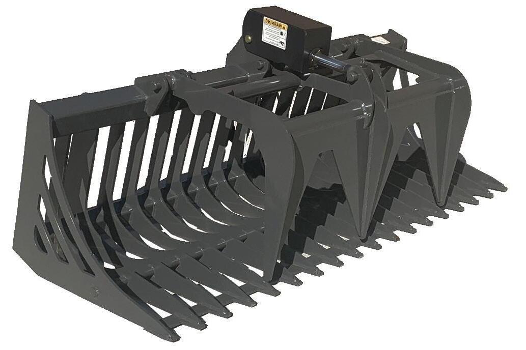 The Grapple Buckets are very versatile attachments. They are available in a wide range of sizes and easily pick up logs, rocks, left over building supplies, or any other type of debris. They can also be used to smooth dirt while clearing and grabbing.