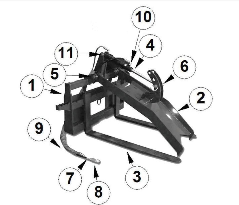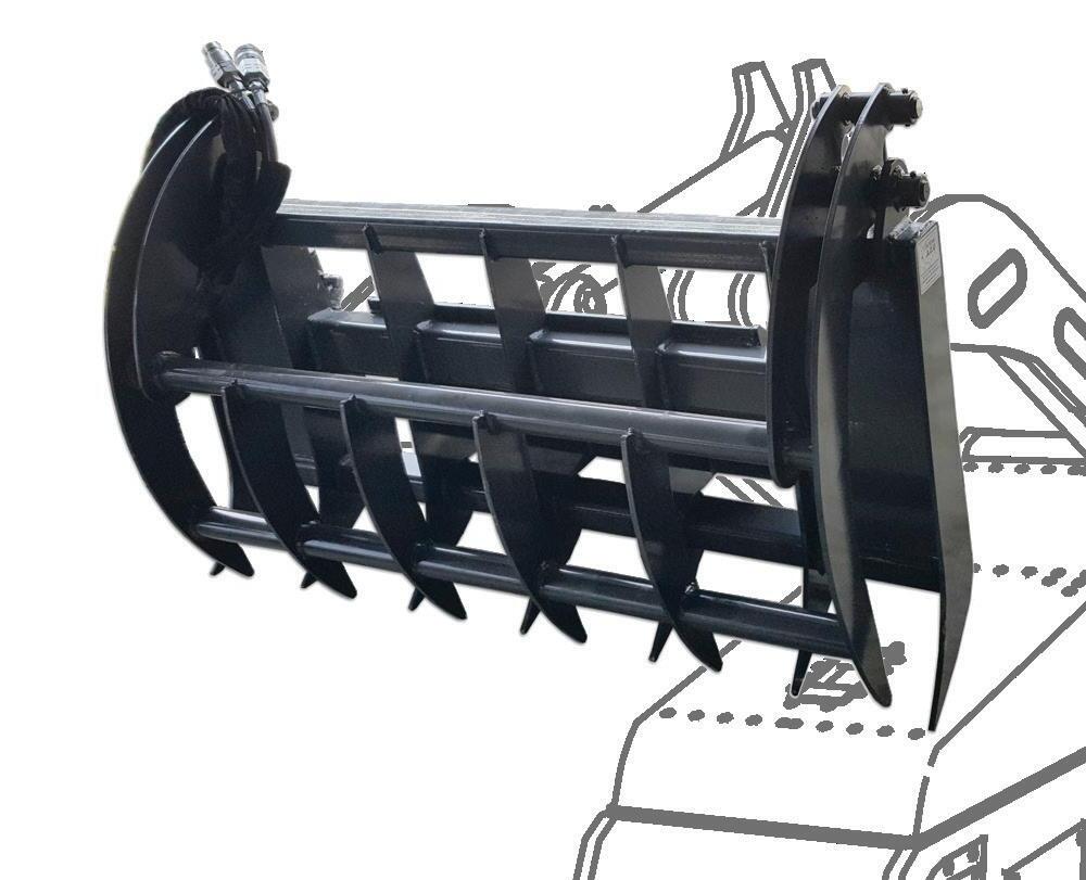 Fork Grapples are ideal for farm work, logging operations, and general contracting functions. The top tine is adjustable for small or large loads and the hydraulic cylinders gives plenty of clamping force. The fork tines are completely heat treated.