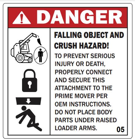 To prevent personal injury or even death, be sure you read and understand all the instructions in this manual and other related OEM equipment manuals! This attachment, if not used and maintained properly, can be dangerous to users unfamiliar with its operation. Do not allow operating, maintaining, adjusting, or cleaning of this attachment until the user has read this manual and has developed a thorough understanding of the safety precautions and functions of the unit. This attachment is designed for the purpose specified. DO NOT modify or use this attachment for any application other than that for which it was designed. Attachments maintained or operated improperly or by untrained personnel can be dangerous, exposing the user and/or bystanders to possible serious injury or death.