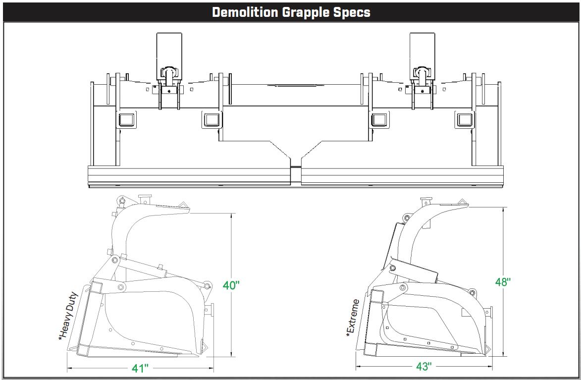 The Standard Duty Rock Grapple has dual cylinders.
