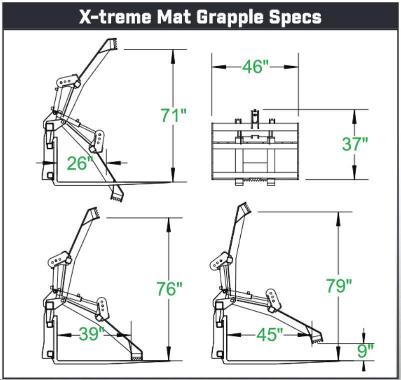Our X-Treme Mat Grapple is designed to pick up and move equipment mats. It can also be used to transport logs, poles, and just about anything else. We build this with a lifting capacity of 8,500 lbs.