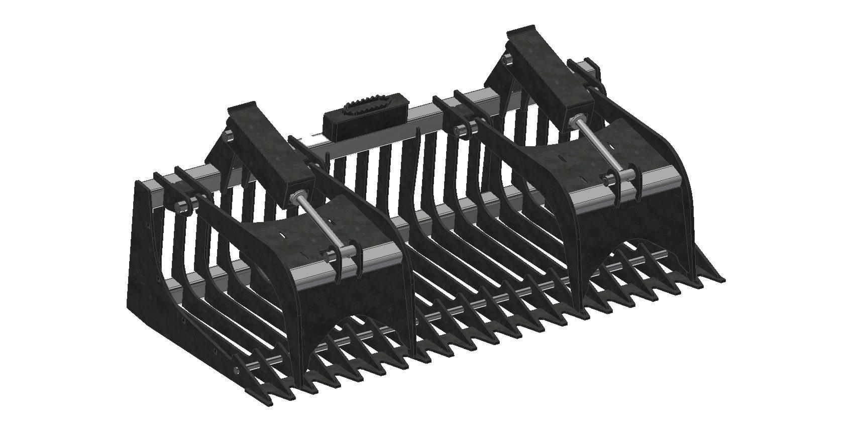 The Heavy Duty Rock Grapple is built with tine spacing to capture even smaller rocks and is equipped with a cutting edge. Dual cylinders en able optimal function.