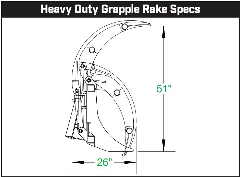 Grapple Rakes are ideal for raking and loading debris. The shape of the grapple makes is easy to roll debris into tight places. These grapples use American made cylinders that are built to handle the toughest jobs.