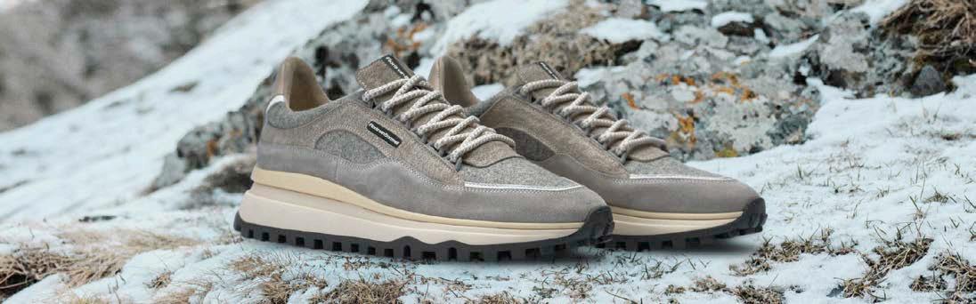 The collection by the Dutch shoe manufacturer features many new highlights for fall/winter 2025/26. The assortment is accentuated with belts and bags. Elegant, lightweight women’s sneakers with glittering velour, the finest black nappa, delicate, airy organza laces and a wavy, lightweight sole with a heel tab are chic all-rounders for any look. Waxed suede in a leopard look meets golden metallic elements and glittering mesh-like suede for a sophisticated and elegant upper. This is combined with a new, timeless rubber sole made of a phylon blend and a vintage-inspired logo. Funky and classic at the same time: A Norwegian model with sparkling pony hair, dark leopard details and luxurious snake-embossed suede. For men, classic indoor sneakers made of high-quality leather blends with abrasion-resistant rubber soles, inspired by a retro 1970s sports style. Brand new derbies and desert boots are made of printed Italian suede with a felt-like finish. Archival branding pays homage to more than 300 years of heritage. @florisvanbommel