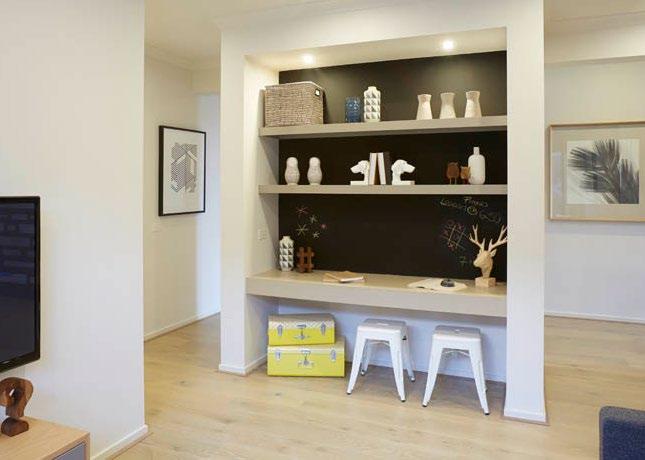 Consider how you can add built-in furniture to maximise the use of awkwardly shaped or small spaces in your home. Add temporary décor and storage so the purpose of the space can be changed if desired.