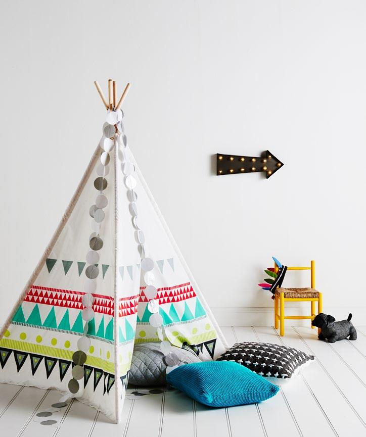 Once the tedious planning is out of the way, have some fun adding exciting extras to the room. Attach a chalkboard to the wall, pick up a foldaway tent and dress-ups for playing make-believe, a desk for colouring and homework, and vibrant decorations like lights, throws, wall decals and posters, which are easy to change as they grow.