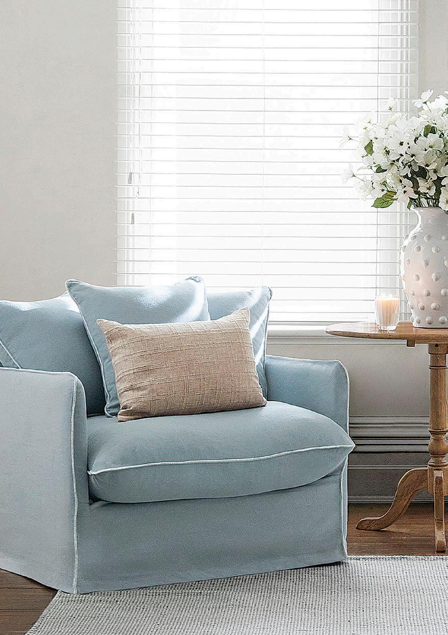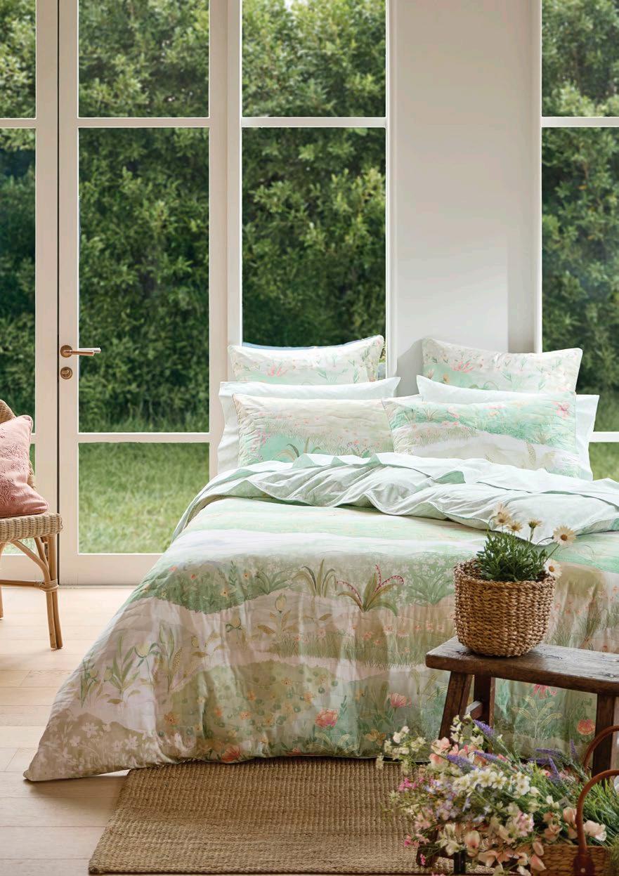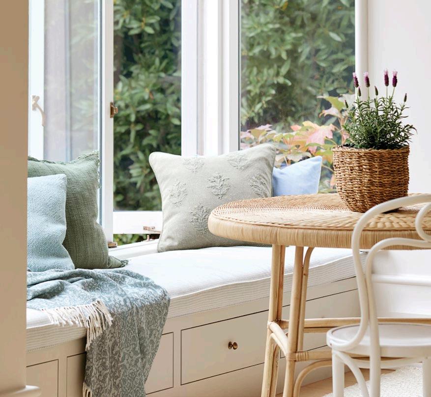 The Spring season calls for lighter soft furnishings, both in colour and fabric composition. I recommend throw blankets in linen or cotton textures draped over the corner of a sofa or the end of a bed for a relaxed look. I also suggest switching out your faux fur and heavily textured cushions to beautiful Belgium linen alternatives in colours such as sage green or powder blue.