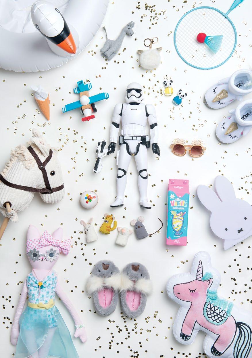 1. MR & MRS JONES Baby float swan $39.95 2. PUREBABY Toy $12.95 3. PAVEMENT Keyring $9.95 4. KIDSTUFF Badminton set $19.99 5. COTTON ON KIDS Slippers $24.95 6. SEED HERITAGE Nail polish 5 pack $12.95 7. ONE LITTLE MONKEY Discoveroo Build A Plane $21.99 8. MR & MRS JONES Fan $19.95 9. KIDSTUFF Frey Lane hobby horse $29.99 10. PATTISON’S PATISSERIE Cupcake $3.50 11. TOYMATE Star Wars figure $49.99 12. SEED HERITAGE Sunglasses $24.95 13. SMIGGLE Pencil case $18.95 14. COTTON ON KIDS Miffy lamp $24.95 15. INCY INTERIORS Farm Friends finger puppets $45 16. POTTERY BARN KIDS Swim Cat designer doll $79 17. PETER ALEXANDER Slippers $35.95 18. ADAIRS Kids unicorn party cushion $29.95