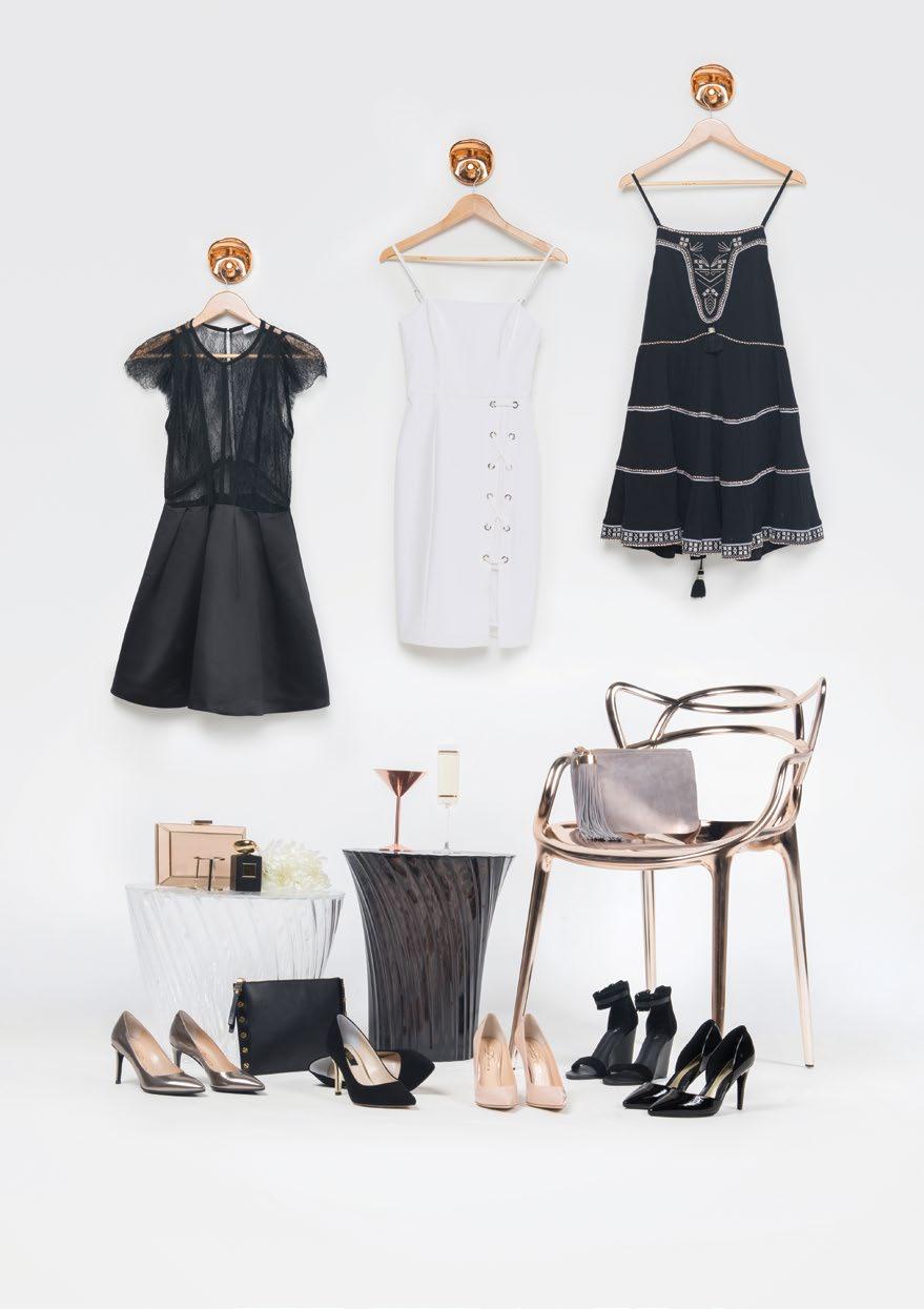 1. KARTELL Copper hooks $45 each 2. SANDRO PARIS Davina dress $750 3. KOOKAÏ Palace dress $180 4. FLANNEL Birds of Paradise cami dress $530 5. KARTELL Masters chair metallic $810 6. RODEO SHOW Olga Berg clutch $99.95 7. SABA Cuff $59 8. DAVID JONES Giorgio Armani Rose D'Arabie EDP 100ml $378 9. KARTELL Sparkle stool $385 10. WHEEL&BARROW HOMEWARES Copper martini glass $19.95 11. COUNTRY