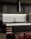 The atmosphere is set with Kitchen Craft's Soho Thermofoil in Textured Ore, a deep, dark finish that anchors