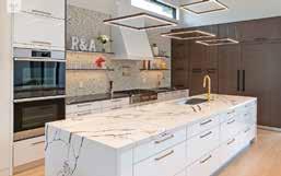 AyA’s cabinetry is manufactured in Canada and reflects a Europeaninspired aesthetic known for its simplicity and durability. Soft-close hardware, thoughtful internal organizers and integrated appliance panels create a seamless look that minimizes visual clutter. The result is a kitchen that feels calm and architectural – a space that supports everything from weekday dinners to weekend entertaining without missing a beat.