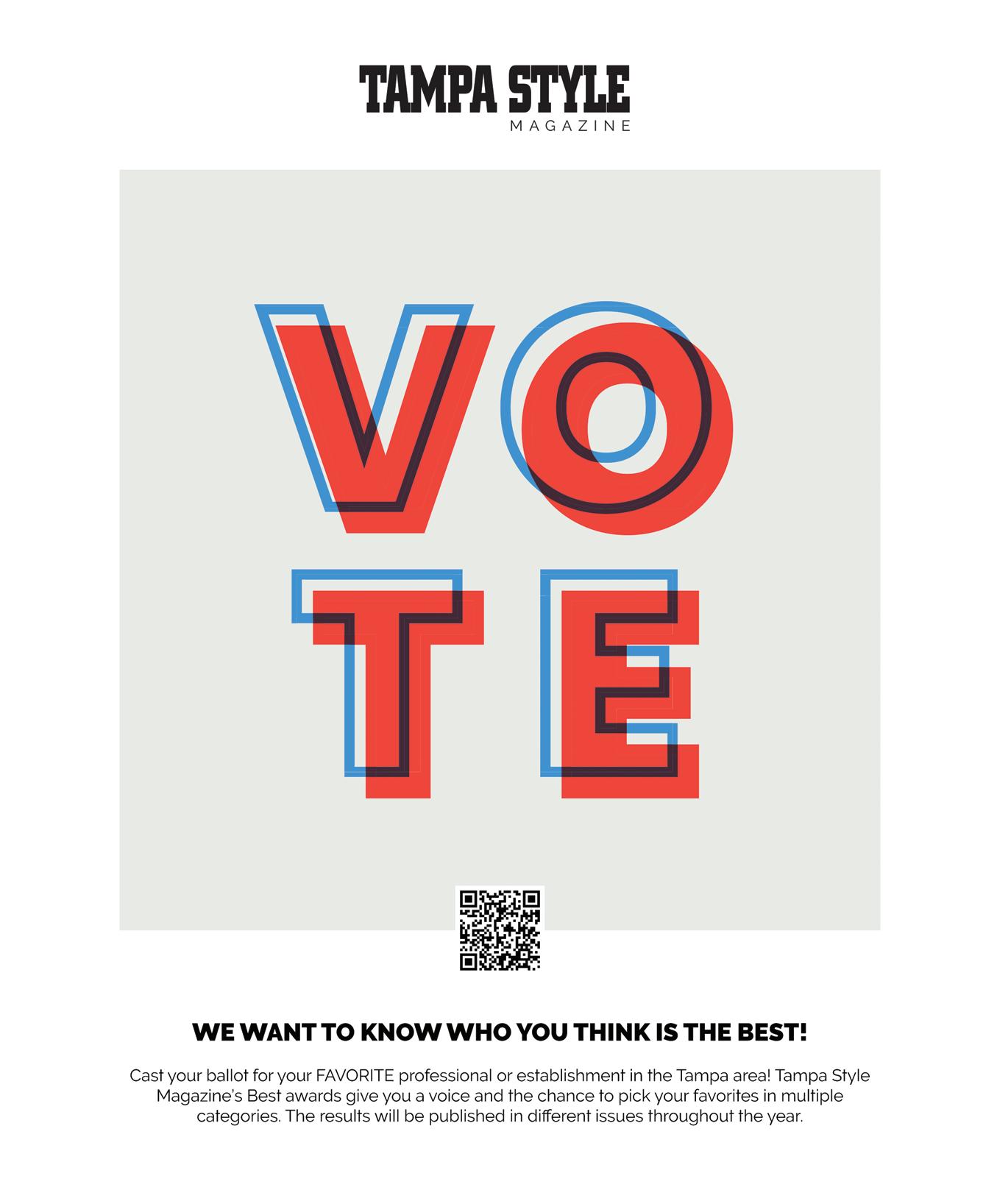 ISSN: 1553-2011 Published monthly, TAMPA STYLE® is a registered Trademark. The City’s No. 1 Magazine of Style, Don’t Miss The Beat, In Case You Missed It, Dirty Laundry, Kitchen Talk, Life Line, Travel ‘N Style, Power Couple, T-Style, Our Town, Dining In Style, Tampa Now, Elite Doctors, Eye Care, Cool Shots, Best Cellars and Real World are © Copyrights 2015 by TAMPA STYLE®. All rights reserved. Reproduction in whole or in part of any text, photography, or illustration only with written permission of the publisher. TAMPA STYLE®, its officers, staff members or writers do not warrant the accuracy of or resume responsibility for any of the material contained herein. Freelance photographers are responsible for their copyrights. All photo materials, letters and text submitted to TAMPA STYLE® automatically become property of TAMPA STYLE MAGAZINE®. Email inquiries to: info@styletome.com. Subscriptions are available in the US $19.87 per year and Canada for $45 per year. To distribute Tampa Style Magazine at your business please email info@styletome.com