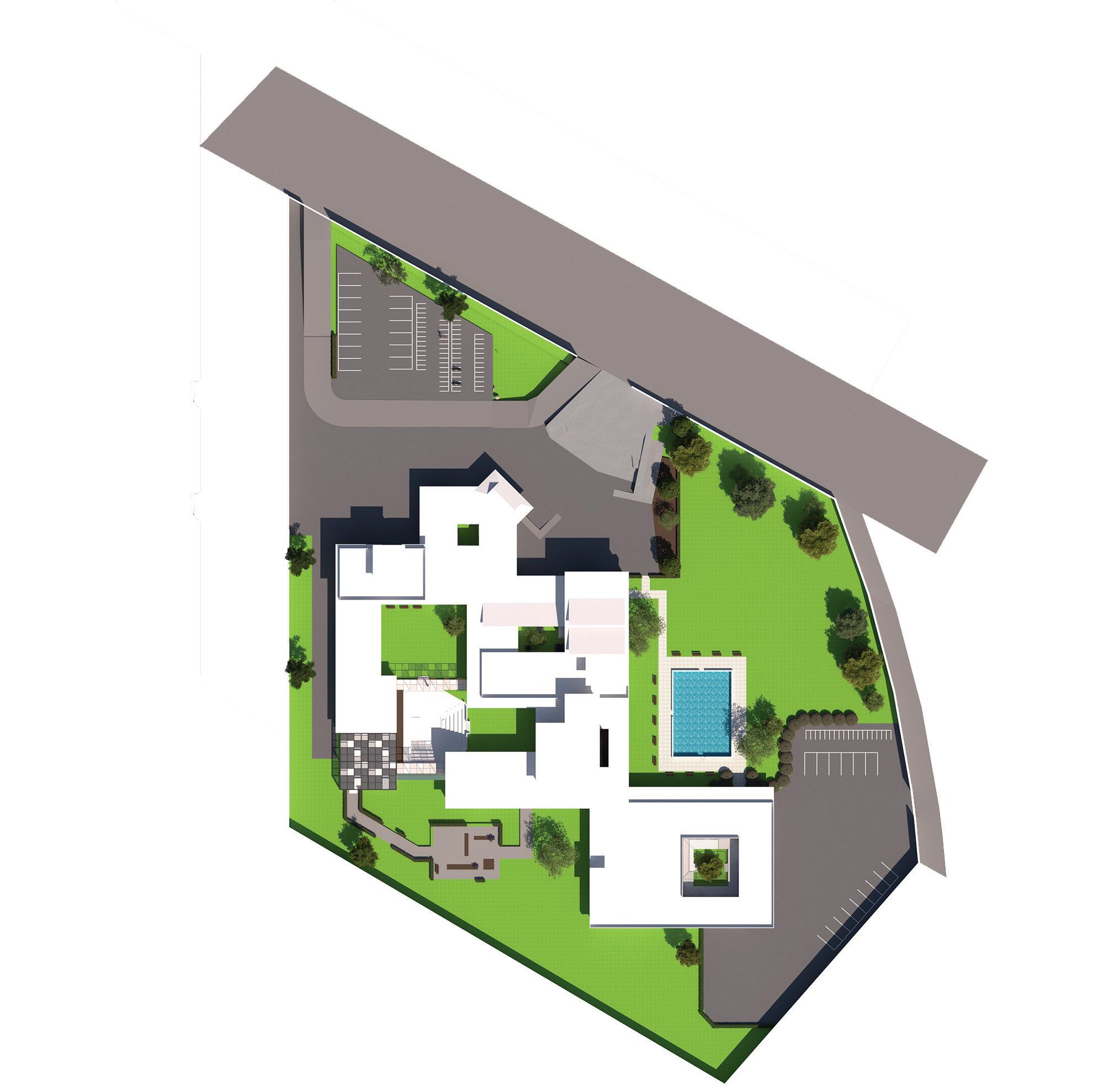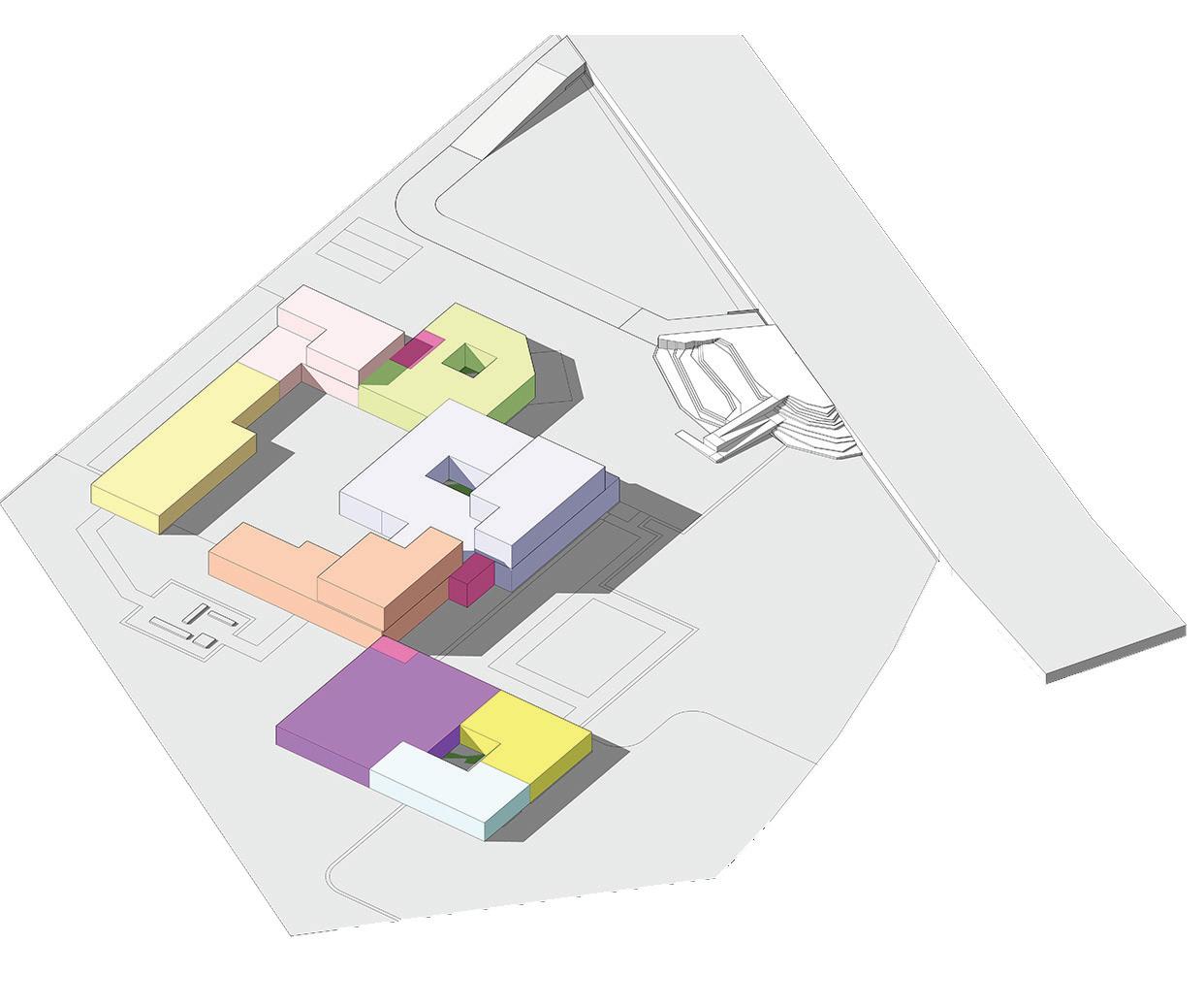 I used the contour site as an inspiration and designed my hospital in conture form, which helped the design to achieve better natural ventilation and daylight. This form gave my design very natural and organic look. In this design, i gave equal consideration to outdoor landscape area which i believe is very important part in hospital. The landscaping and the green areas in this project helps to relax the tense and stressful environment of the hospital.