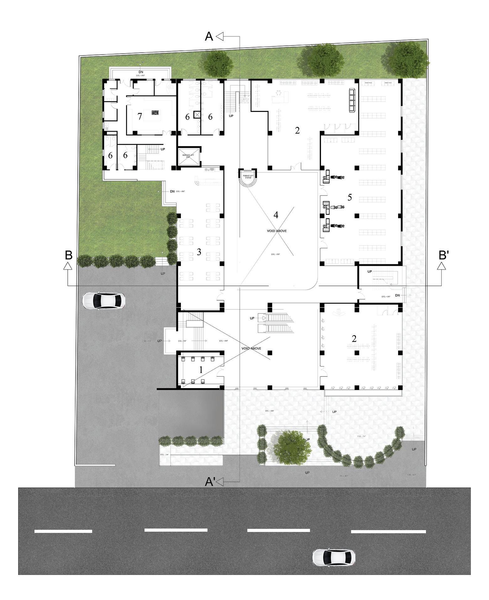 The site, Uttar Dhoka Road is highly commercialized area. We were assigned to design a mixed use commercial complex which consisted of both rental and recreational space. The premise of my design was to create an idea where visitors can experience better and comfortable environment. This deisgn consist of central atrium/courtyard for better air circulation and natural daylighting.