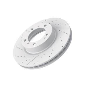 The introduction of our unique cross-drilled and slotted design increases the number of exit points, allowing more brake pad friction dust and gases to escape through both the cross-drilled holes and slots, resulting in better braking performance.