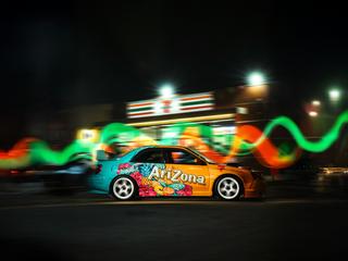 "Social media has brought me opportunities to work with brands like Arizona Iced Tea, 7-11, Subaru, Skechers and more.", Wolf says with pride. "In 2020 I wrapped my 2018 STI a pistachio green color, added the cherry blossoms for Subaru, because they use cherry blossom pink, and then people started to tag Arizona Iced Tea on Instagram.", she explained. "I then realized I turned my car into an Arizona Green Tea can!