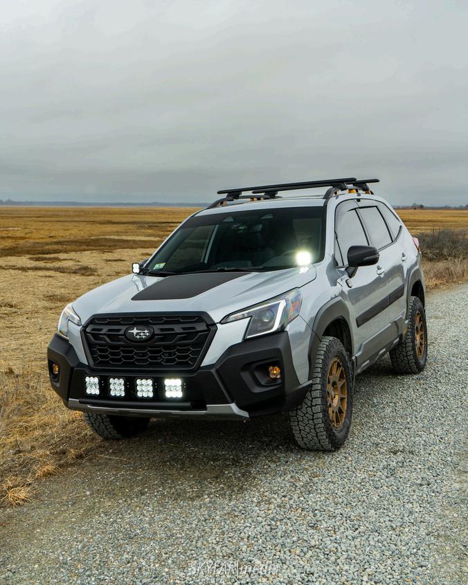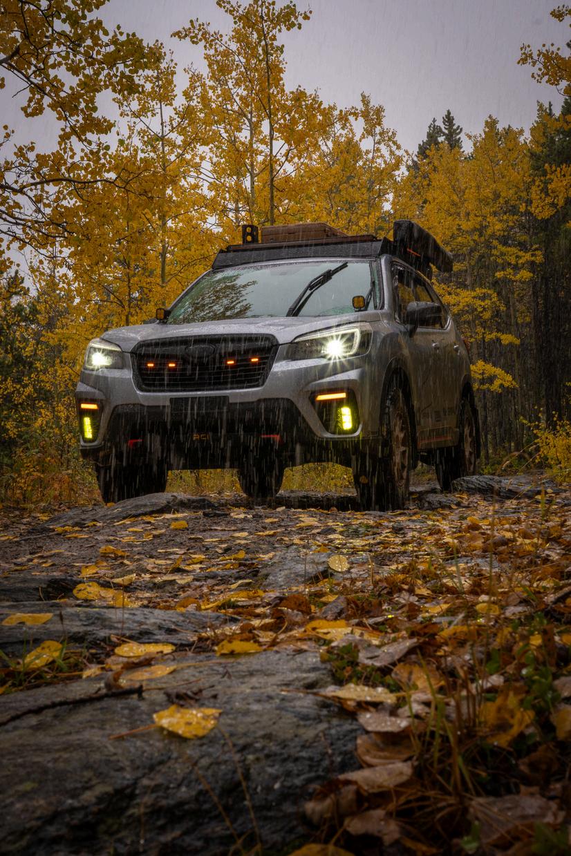 A smart second phase of preparation is to perform some physical modifications to give your vehicle another layer of protection and enhancement to make sure any unknown or unexpected obstacles will not cause your Subaru to stop short when you need to move forward or cause serious damage which could result in injury or a fatality. First, protecting the undercarriage, sides, and both the front and rear of your Subaru is extremely important when you are on a journey through territory that may expose rocks, debris, and other natural challenges that propose potential hazards. Installing appropriate skid plates to protect the components exposed underneath the vehicle and adding sturdy brush guards to protect the front end from branches and obstacles would be an excellent investment before hitting the trail. Secondly, purchasing additional lighting which includes protected LED spot lights for the front or a more expansive LED light bar for the roof will greatly improve visibility if caught on a dark trail at night. Next, as mentioned earlier, purchasing a more aggressive and robust set of tires and wheels designed primarily for off-road driving would be another smart investment before stepping into the wilderness for that potentially challenging journey. There are many options for direct replacement of the factory set which give the vehicle a better thread, grip, and profile for off-road performance, but are not different from the stock size. If an appropriate upgrade to a larger wider tire size is wanted, the last preparation an enthusiast would need to consider would be a modification to their Subaru's height and suspension to raise the clearance and provide more performance when larger obstacles and possible holes in the trail may be too challenging for the stock configuration.