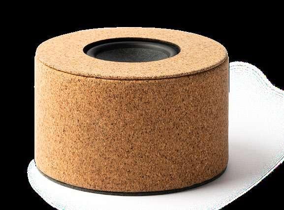 Speaker with main structure in natural cork and visible cone. 5.0 Bluetooth. 3W output. Rechargeable battery. Cable included. Presentation in eco design box.