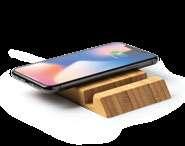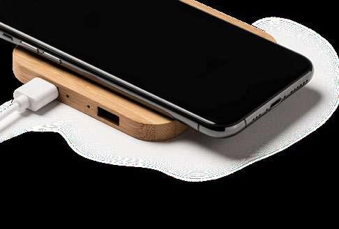 Wireless charger in natural bamboo. Charging capacity: up to 3 devices simultaneously. Compatible with wireless technology models. DC5V. DC5V/2.1A USB output port. Presentation in eco design box. 9 x 1 x 9 cm 1/25 50