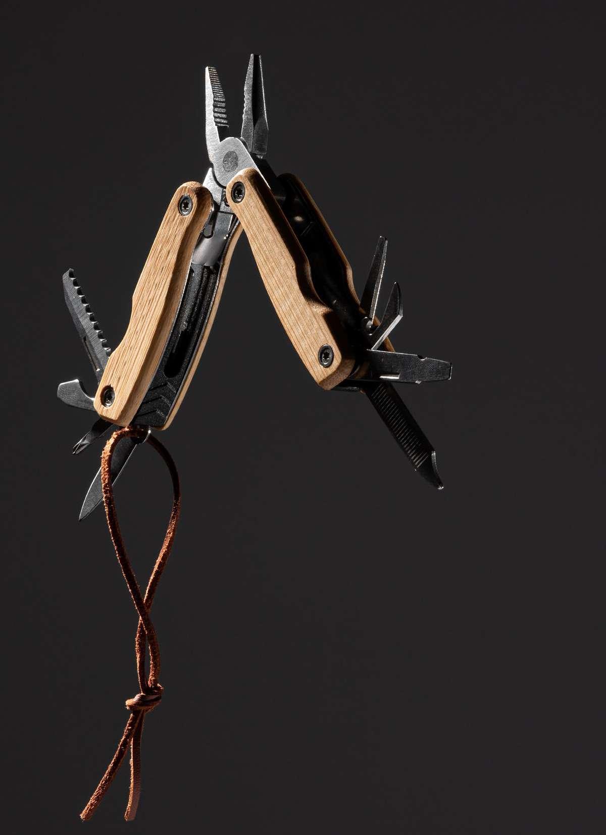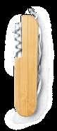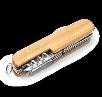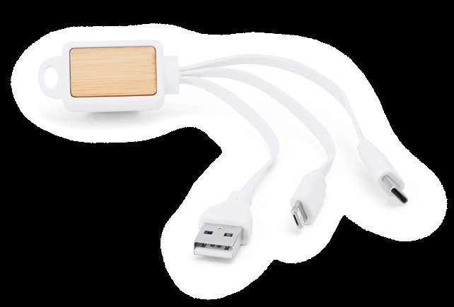 3-in-1 charging cable. ABS and natural bamboo body. Micro USB, Type C and Lightning connection. Presentation in brown paper bag with window.