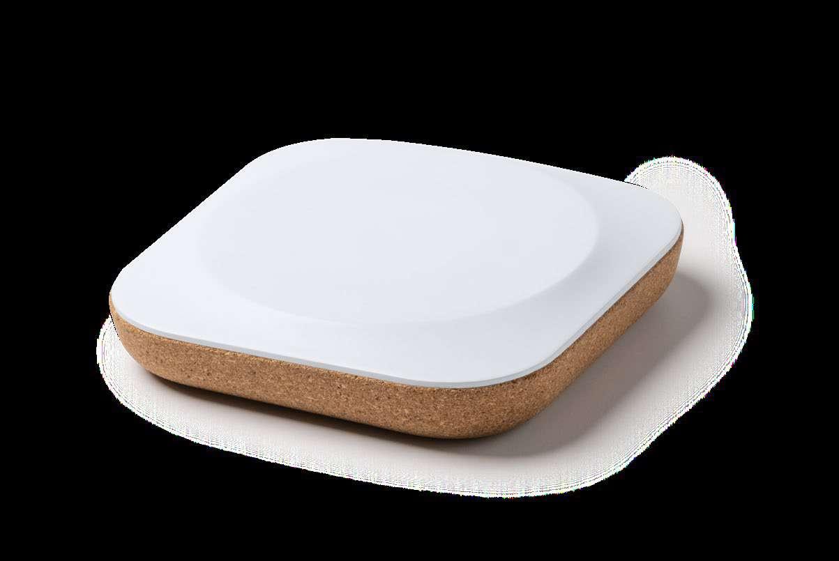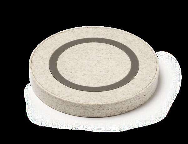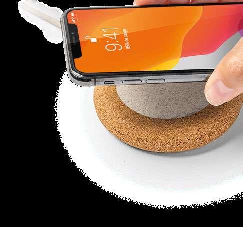 Wireless charger with body in natural cork and wheat fibre. DC5V. Cable included. Presentation in eco design box.