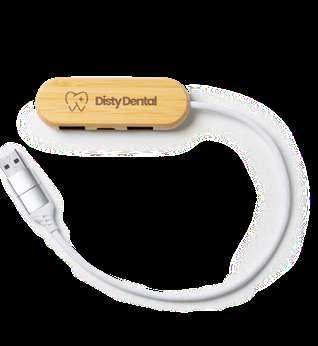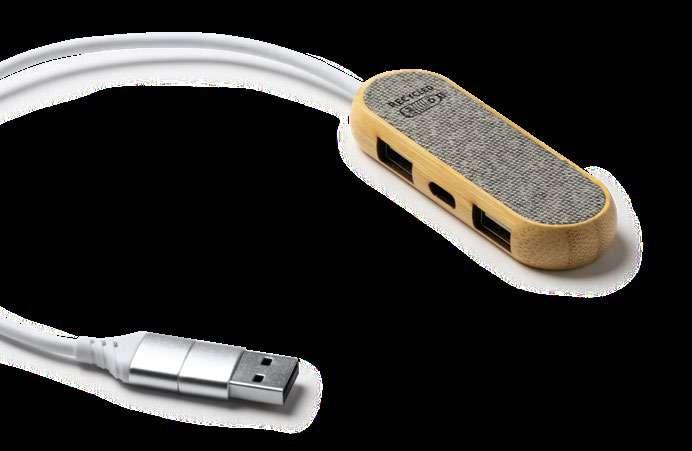 USB port with body in natural bamboo and white cable. 3 in-built USB ports. Presentation in eco design box.