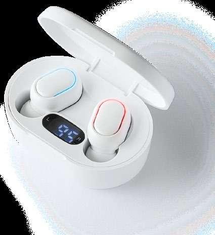 Wireless 5.0 Bluetooth earbuds with charging case in natural bamboo. Multifunction touch button in-built in both earpieces. Hands-free function. Rechargeable battery. Cable included. Presentation in eco design box.