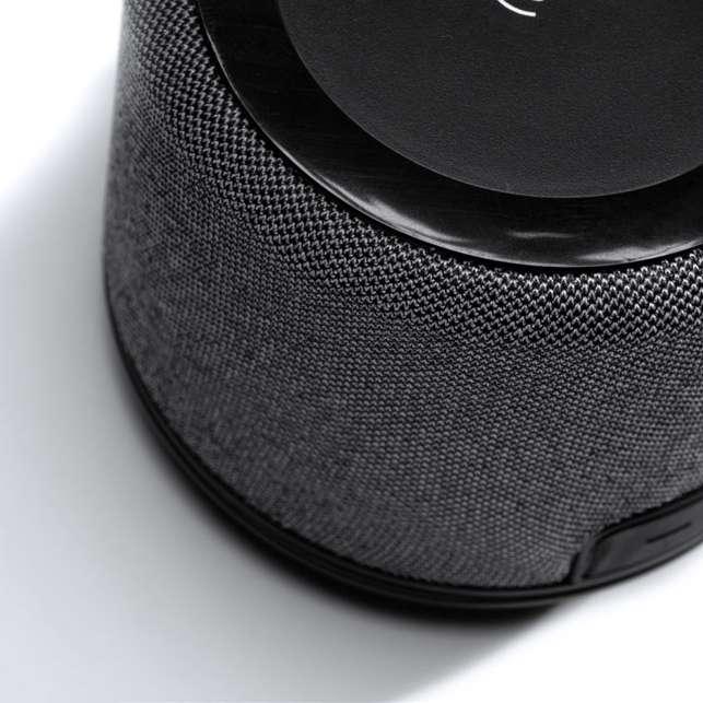 Table lamp with details in cork, with in-built 10W wireless charger on the base and 3W wireless speaker. LED light with three lightning modes. Presentation in eco design box.