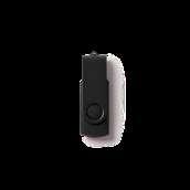 Wireless earbuds in recycled ABS and natural cork. Charging case with rechargable battery. Touch control panel in-built on the earpiece. Hands-free function. Type C connection. Cable included. Presentation in eco design box. 6,7 x 5 x 3 cm 1/50 100 E(4), L2, W