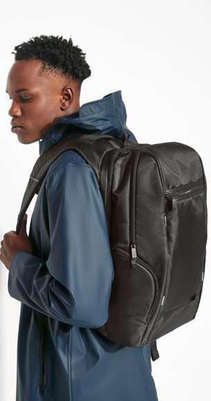 Adjustable wireless headphones in bamboo and RPET fabric. Padded headband and ear pads. In-built touch control with stereo technology. Hand-free function. Rechargable battery. Type C cable included. Presentation in eco design box.
