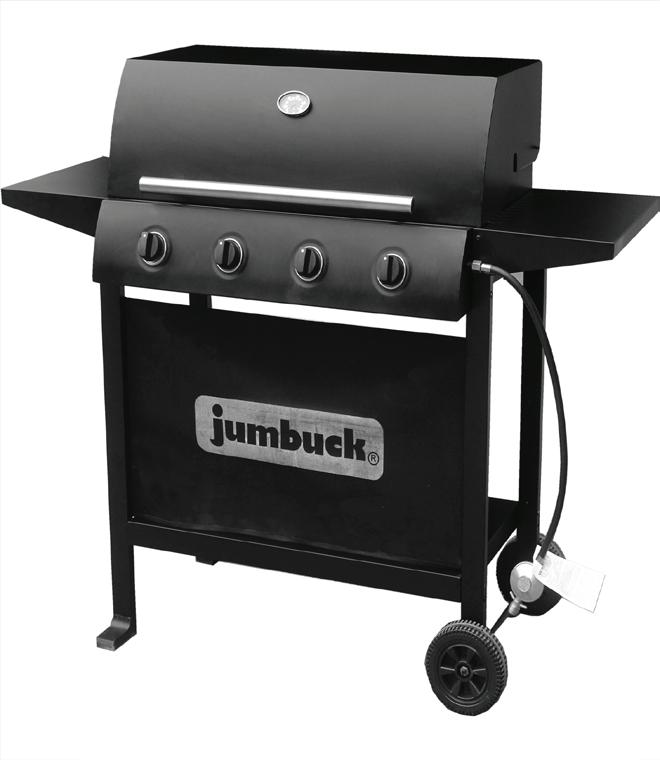 The Jumbuck 4 Burner Gas Hooded Barbecue with side burner is a great outdoor cooking solution for any backyard, balcony or compact decking area.