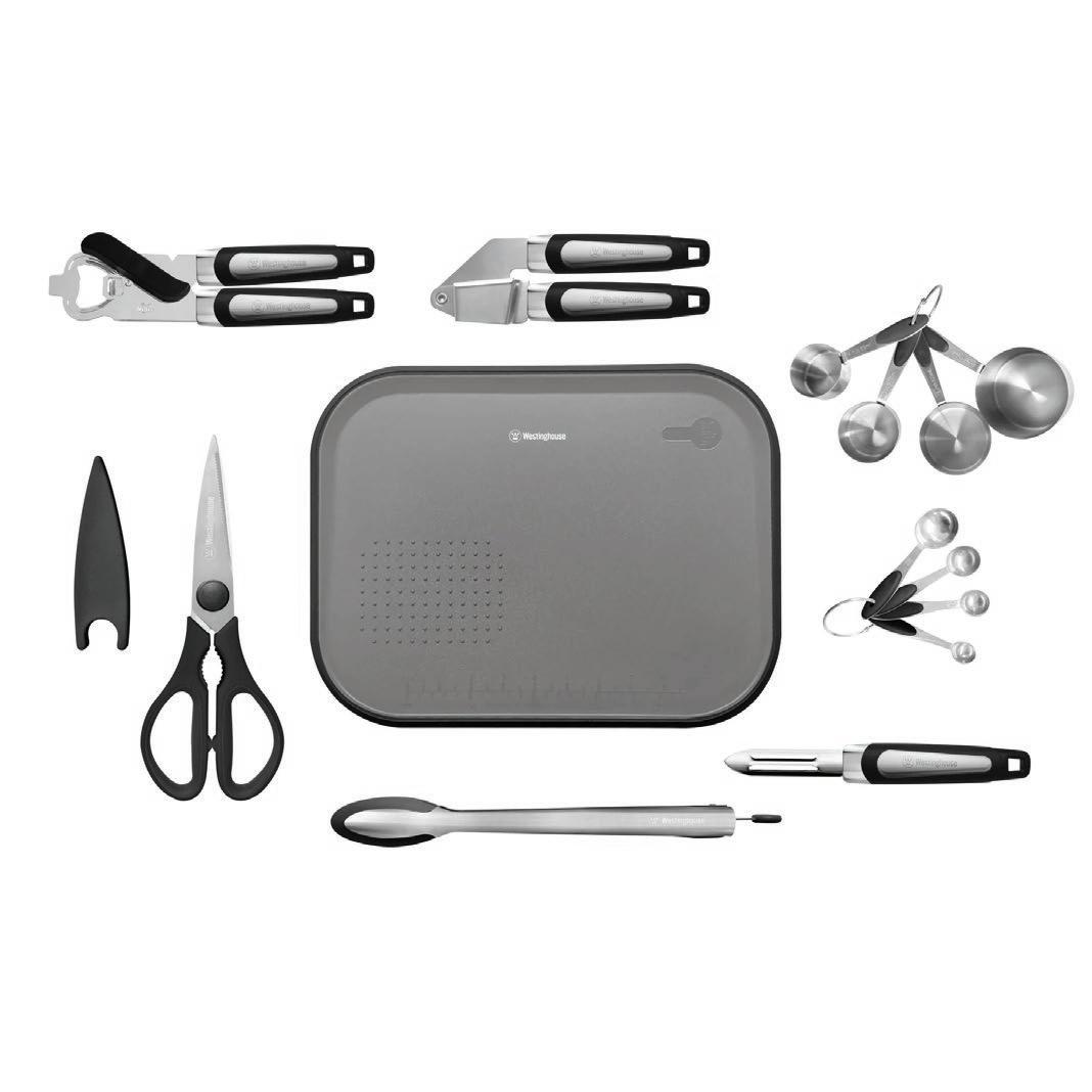 Westinghouse Kitchen Gadget Set - WHUTLS03K Price Valid until 30-09-23 -Garlic crusher. -Measuring spoons (1/2 & 1tsp, 1/2 & 1tbsp) -Peeler. 30cm tongs. -Measuring cups (1/4 & 1/3 & 1/2 & 1cup) -Kitchen scissors. -Reversable chopping board (37.5cm x 29cm) Philips Food Processor 750 Watts 28 Function Westinghouse - 3 Piece 6 Piece Nesting Kitchen $75 cash price $50 cash price 3Pce Silicone Trivet Set WHTR3PC01K $40 cash price $499 cash price $449 cash price XL Food Processor WHFPR01SS $179 cash price Westinghouse - 7pcs Knife Block Set - WHKBSET01AC $139 cash price Usually $157 SAVE $18