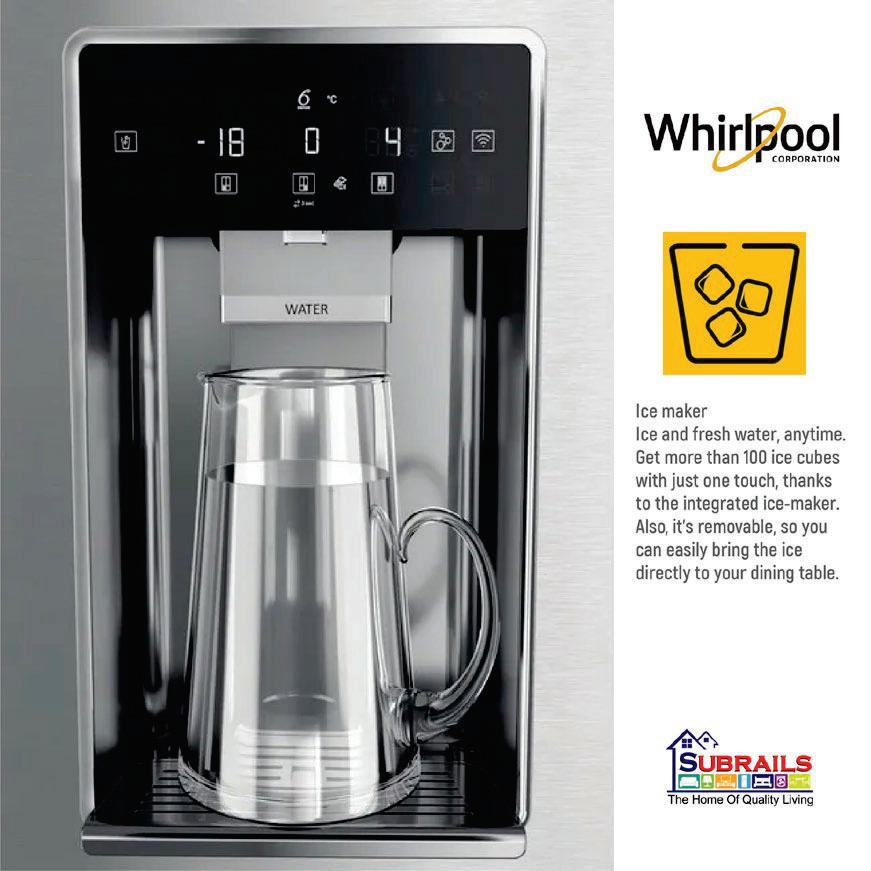 Whirlpool 4 door stainless steel refrigerator with ice maker WQ70902TXX FEATURES *Reduced Freezer Burns *Quality And Appearance of Food Is Preserved *Easy Conversion From Refrigerator To Freezer *More Space Available Inside The Fridge And The Door Bins *More Than 6 Temperature Settings *Optimal Food Preservation Ice Production And Storage *Images for illustration purposes only. Accessories not included. $7384 CASH PRICE