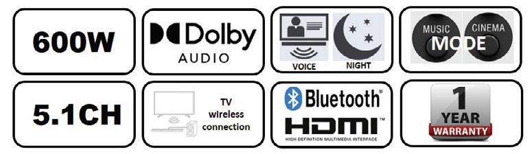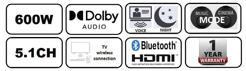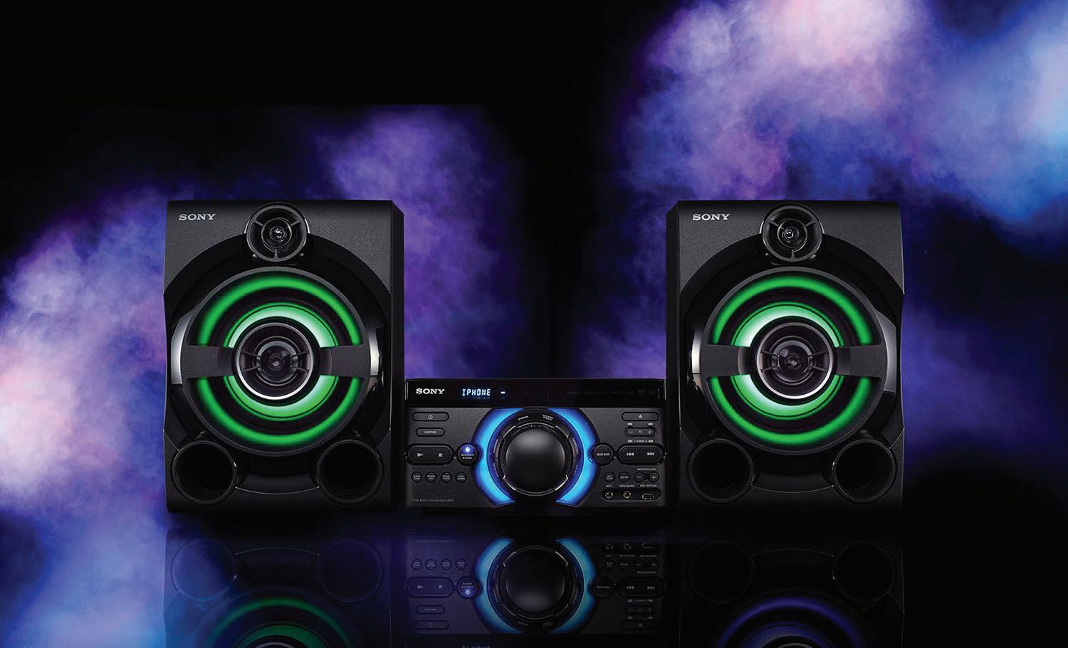 • Super Bass Effect and flashing LED party atmosphere