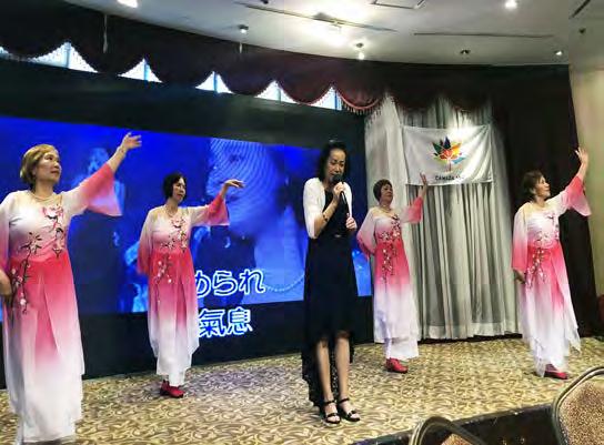 隨後表演時間開始。中僑耆英服務聯會的興趣班 學員們帶來精彩的表演。有悠揚動聽的歌曲合唱,文 藝生動的普通話朗誦,活潑絢麗的舞蹈表演,美輪美 奐的精彩節目讓大家目不暇接。