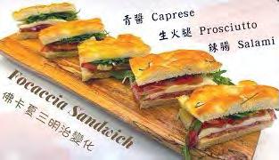 佛卡夏三明治 佛卡夏三文治是一種美味的三明治,以佛卡夏麵包為基礎,夾 雜各種食材。