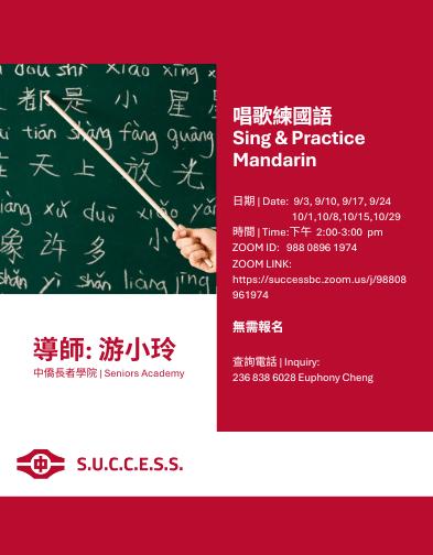 S.U.C.C.E.S.S. Chinese Help Lines provides emotional support and information referral by phone in Mandarin and Cantonese
