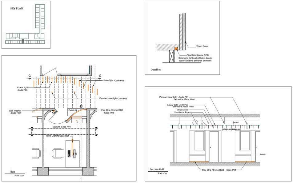 The challenge was to propose a new lighting design for two zones of the building: the new and old office wings. The lighting design was proposed after a thorough analysis of daylight, user circulation, and pattern to create dynamism and propose lighting considering the building's renovations in the near future and reusing some of the existing luminaires and fixtures.